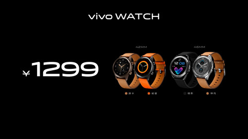 价格方面,vivo WATCH智能手表售价统一为1299元,有46毫米表盘的暗影和锋尚,以及42毫米表盘的秘夏和摩卡四个款式。9月28日全渠道开售。