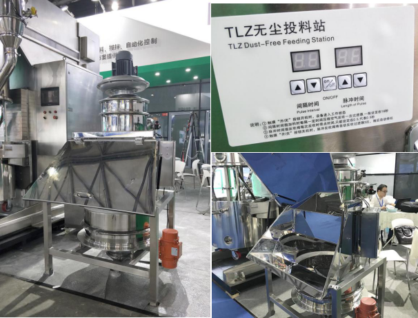 无尘投料站在胶粘剂行业中广泛使用,袋装物料投料时,出现扬尘现象,含尘气体在投料站引风机的作用下,进入平台箱体中,粉尘随气流流向滤芯,空气穿过滤芯进入袋内,通过引风机出口排出,较细的粉尘被滞留在滤芯表面,不能随气体排出,从而达到气、尘分离的效果。整个过程是密封输送、筛分,没有粉尘飞扬。