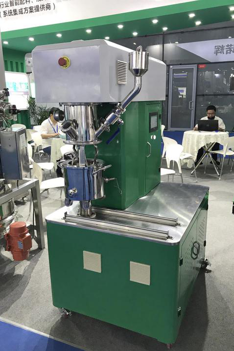 The equipment displayed on the exhibition is a 1000L vessel-used mixer, which has two forms of high-speed dispersing and low-speed mixing, and the outer jacket can be used for heating / cooling.