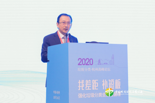 杭州市城市管理局局长李磊就“高质量全面推进生活垃圾分类‘杭州模式’——杭州市生活垃圾分类回顾与展望”作了发言,他回顾了杭州垃圾分类工作进程,从垃圾分类“杭州模式”的全面推进、城乡统筹全域覆盖、再生资源回收体系转型升级、“五多五少”问题破解等方面介绍了杭州垃圾分类取得的主要成效,剖析了存在问题,并对下一步工作进行了部署和展望。