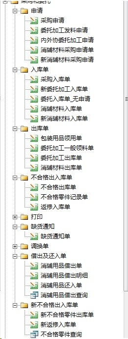 采购模块:包括了零件及原材的,采购申请、采购入库、出库、不合格零件及原材料的处理、及零件原材料的缺货通知。