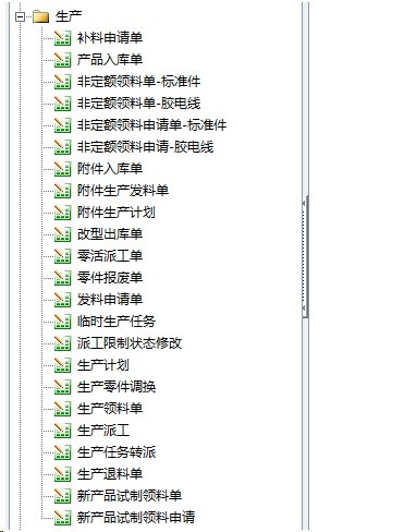 生产模块:生产计划、生产派工、生产领料、补料、生产入库、零活、零件报废等功能