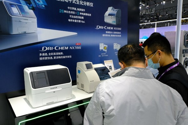 曾在疫情初期发挥重大作用的富士胶片全自动干式生化分析仪FUJI DRI-CHEM NX500i及升级版NX700i亮相2020 CMEF展会现场