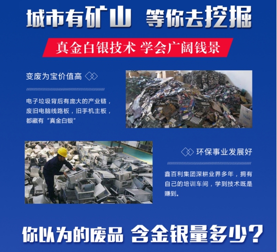 在贵州鑫百利机械设备有限公司眼中,废旧的电子产品就是一克克珍贵的黄金。在设备方面,鑫百利无疑更加先进,更加符合国家现阶段的环保政策,效率也要更高。一些厂家生产的炼金设备不仅价格昂贵,而且还会产生大量的废料浪费以及环境污染,让人触目惊心。贵州鑫百利机械设备有限公司不产生二次垃圾,操作简单,耗能更是小到忽略不计。除此之外,鑫百利的黄金提纯纯度高,全智能型提炼生产,几乎不需要人为介入,减少了一大笔成本。除此之外,贵州鑫百利机械设备有限公司研发的新技术不会破坏电子基体,环保生产。不需要高额成本的投资,只需要一台设备就能轻松淘金,顺利创业当老板!