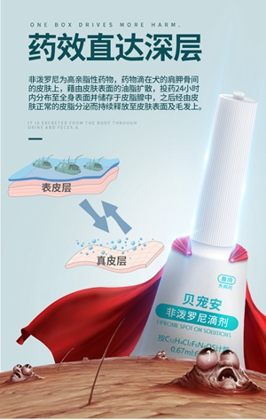 贝宠安的主要成分为非泼罗尼,其作用机理为阻断γ-氨基丁酸受体控制的神经膜氯离子通道诱导氯离子流,引起神经系统极度兴奋而导致虫体死亡。同时,它还是一款对宠物高效安全产品,怀孕的宠物和幼小宠物亦能正常使用,因此铲屎官们大可以放心使用。