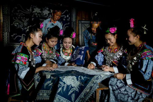 风景秀丽的丹寨每当走进风景秀丽的丹寨,看到悬崖峭壁、瀑布、幽谷,总想和当地的老人们深入交谈,多了解中国丹寨的非物质文化遗产,对这里传承千年的古老手工艺品形成更深刻的了解。丹寨不仅有蜡染、造纸、苗族服饰、金鸡舞、苗族佳丽、苗族新年等深受欢迎的非物质文化遗产,还有丰富多彩的民俗仪式和民俗文化。当你融入这种氛围,你会完全忘记生活中的烦恼。我们可以穿上多姿多彩的苗族非物质文化遗产服饰,在悠扬的芦笙声中感受苗族人民的热情好客和苗族的地方特色。当然,专家们也把这里的苗族服饰称为“身上的史诗”。服饰图案大多来源于这里人们的日常生活,具有特殊的寓意和表达方式,象征着人们对美好生活的向往。