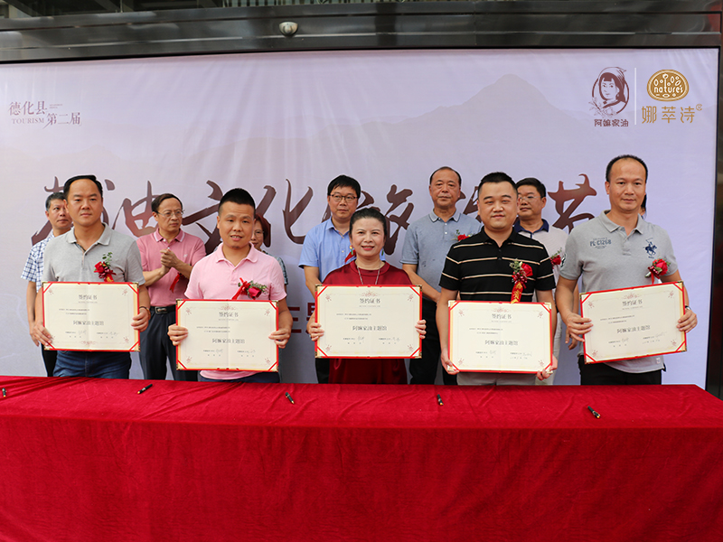 近年来,山茶油产品成为国内高端食用油新势力,各类优质山茶油产品的也频繁亮相各大行业活动。2020年8月18日,德化县第二届茶油文化旅游节暨阿嫲家油主题馆开业;2020年9月7日 ,阿嫲家油精彩亮相第十三届海峡两岸农订会;2020年10月11日,汇拍直播产业基地落户晋江,德化县祥山大果油茶有限公司旗下食用油品牌阿嫲家油和日化品牌娜萃诗作为汇拍公益直播间供应商,共同参与助农计划,凝聚产业新力量。