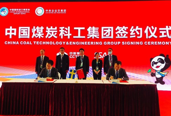 2020年11月7日,在第三届中国国际进口博览会国资委中央企业交易团签约现场,中国煤炭科工集团下属宁夏天地奔牛实业集团有限公司(以下简称“天地奔牛”)与全球高强度钢制造商瑞典钢铁集团(以下简称SSAB)签订总价值数百万美元的采购协议。