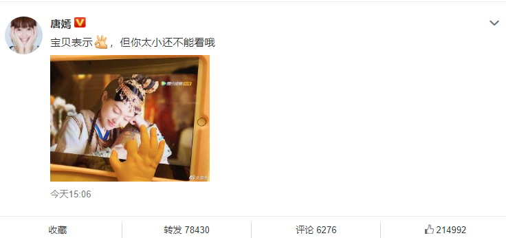 近日,唐嫣在微博晒女儿拿pad看自己主演新剧的照片,还说:“宝贝表示OK,但你太小还不能看哦。”唐嫣女儿的手肉嘟嘟好可爱~2019年9月唐嫣宣布怀孕,今年2月顺利产女。
