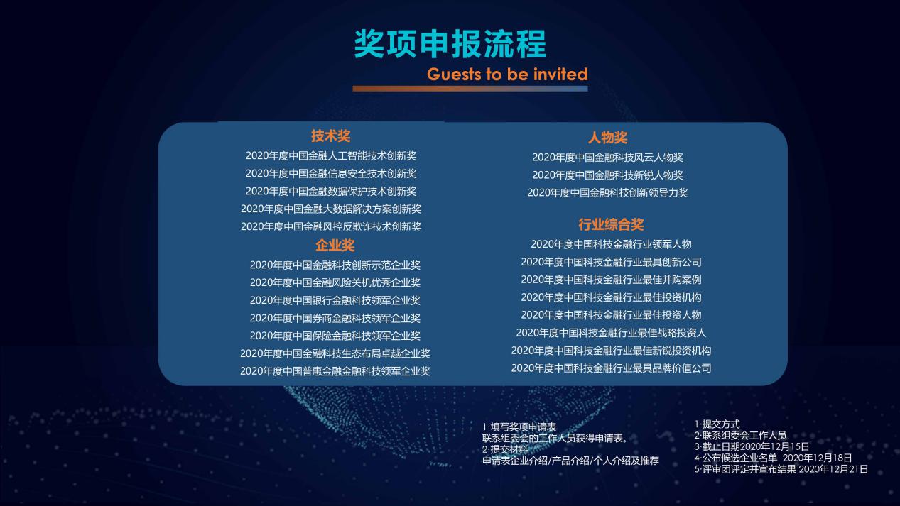在此基础上,2020中国金融科技年会暨第二届中国金融科技国际峰会将于12月26-27号将于上海隆重召开,共同探讨后疫情时代的新趋势·新机遇!