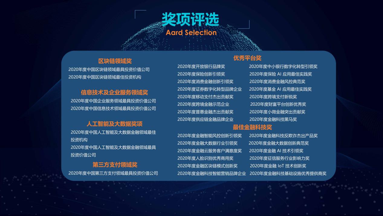 "2020年度中国人工智能及大数据金融领域最佳投资机构 " "2020年度中国人工智能及大数据金融领域最具投资价值公司"
