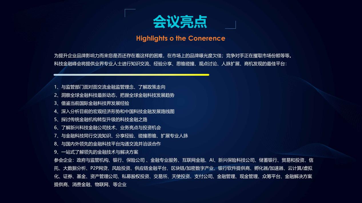 年会旨在为国内外金融从业者提供高质量的合作学习交流平台,积极推动对金融科技领域重要问题的深入研究及最新进展的观点交流,为促进全球金融科技创新贡献力量。