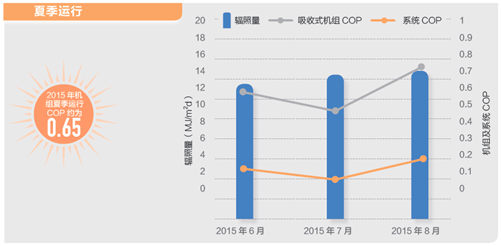 夏季太阳能空调系统平均COP为0.65,冬季太阳能集热效率为27.5%。