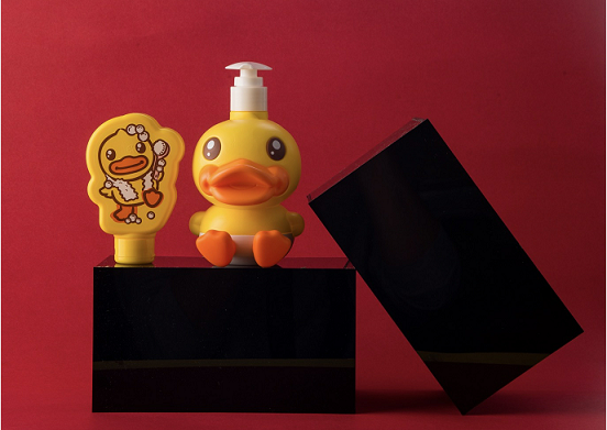B.duck baby洗发沐浴露,按压式包装的外形是一只坐着的小黄鸭,乖巧不失可爱,宝宝看到也会想要学习这只可爱的小黄鸭,乖乖地洗澡,另一种包装则形似宝宝的小手,配上小黄鸭沐浴的图案,小巧玲珑,让人爱不释手,这款沐浴露蕴含山茶油成分,能够很好地滋润舒缓宝宝肌肤;