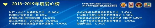 广东中山狮子会香江服务队慈善爱心企业、人士捐款名单