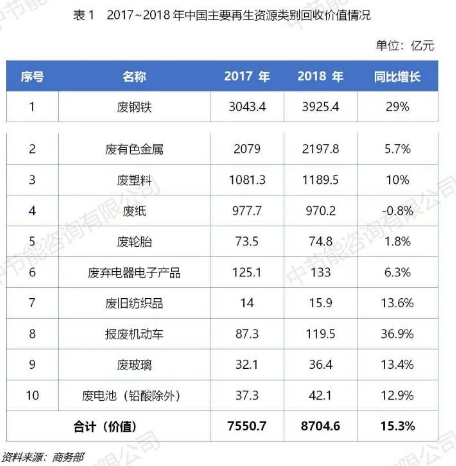去年八类再生资源回收1.6亿吨 可节能1.7亿吨标准煤