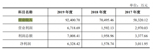 鑫铂铝业近年正处于高速发展阶段,2017 年、2018 年及 2019 年,公司的营业收入分别为 58,320.12 万元、70,495.46万元及 92,400.70 万元,2017 年至 2019 年营业收入复合增长率达到 25.87%。净利润也从2017年的3,011.95万增长至2019年的6328.42万。