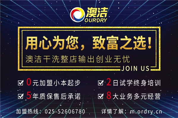 澳-洁干洗以先进的洗涤技术、高品质的洗涤设备、优质的售后服务,是中国洗护的驰名品牌,19年丰富运营经验值得信赖!