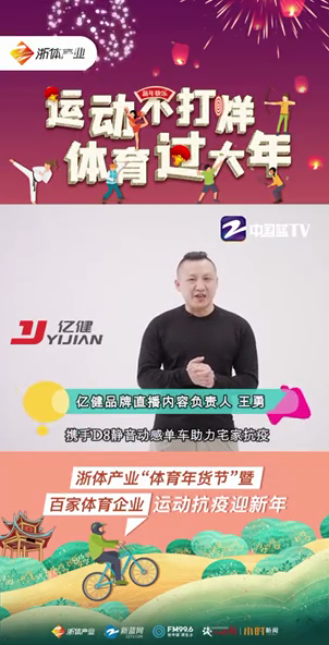 近日由浙江省体育产业联合会主办,浙江广电集团新蓝网、浙江广电集团民生996、钱江晚报动动帮承办的浙江体育产业“体育年货节”暨百家体育企业新年有礼活动,正在如火如荼的举行中。本次活动的口号是“运动不打烊,体育过大年”,号召居民在春节期间居家运动,既响应了国家对于假期居家防疫的指导要求,又能够提升居民身体素质和健康状态,因此本次“体育年货节”可谓意义重大。