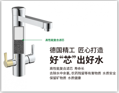 碧水源直饮水龙头,打破传统水龙头和净水机行业界限,合二为一,集水龙头和净水机于一体,一方面实现百姓打开水龙头直接喝健康直饮水的诉求,内置高精复合滤芯,去除水中余氯、农药残留等有害物质,保留对人体有益的矿物元素,水质安全健康,放心直饮;另一方面,采用双出水设计,生活用水、直饮净水两种模式随需切换,全方位满足家庭饮、食、洗等各项用水需求。省去家庭既要购买水龙头,又要另外采购安装净水机的双重烦恼,减少家庭开支又节省空间。此产品一出,横跨传统二大市场,合作伙伴将拥有更大市场,更大商机,引合作伙伴竞相订购。