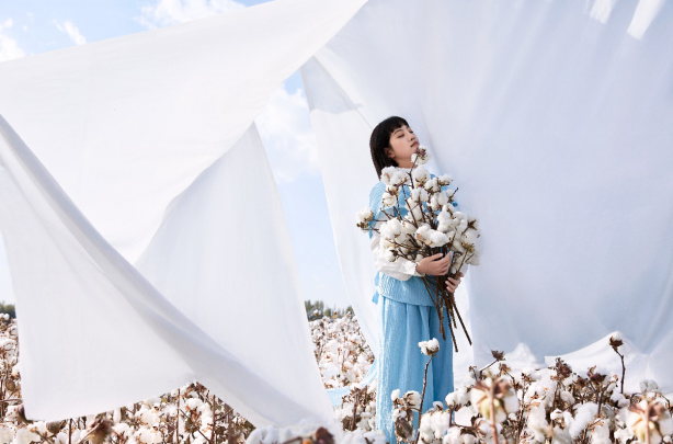 沙暴中,棉苗破土而出,为沙漠种下星星点点的生机;酷暑中,棉蕾始现,绿色的希望蔓延;丰收季,棉花吐絮,采棉者一边忙碌地工作一边自然而然地开始歌唱,表达收获的喜悦。而最后这一幕,曾让与全棉时代合作过的日本摄影大师上田義彦感同身受:“棉和自然,棉和人之间,果然有着深刻的关系。”