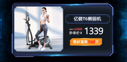 每逢佳节胖三斤似乎已经成为了当下国人的正常现象,在春节期间亲人团聚的喜悦氛围下,面对丰富的美食鲜有人能够有足够的自制力抵挡其诱惑。假期结束后也成为了人们管理身材的高峰期,为了帮助消费者更好的运动锻炼,天猫在2月19日-21日开启超级品类日“宅家享瘦”专场,众多健身好物均有较大力度的优惠。国内知名运动健身品牌亿健也受邀参与本次活动,旗下热销产品亿健精灵ELF跑步机和亿健T6椭圆机也凭借超高性价比吸引了许多消费者的关注。