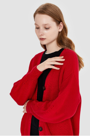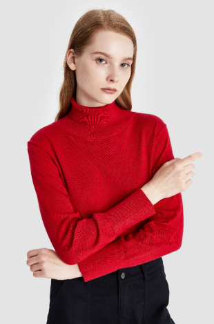 一件简约的红色针织衫,面料质地决定其穿着的舒适感。100%超柔优质棉线织造,