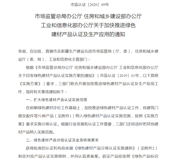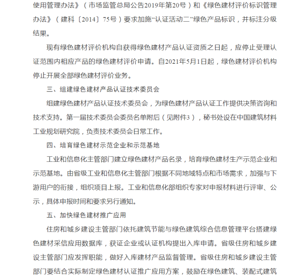 2021全国关于开展绿色建材产品认证工作的通知