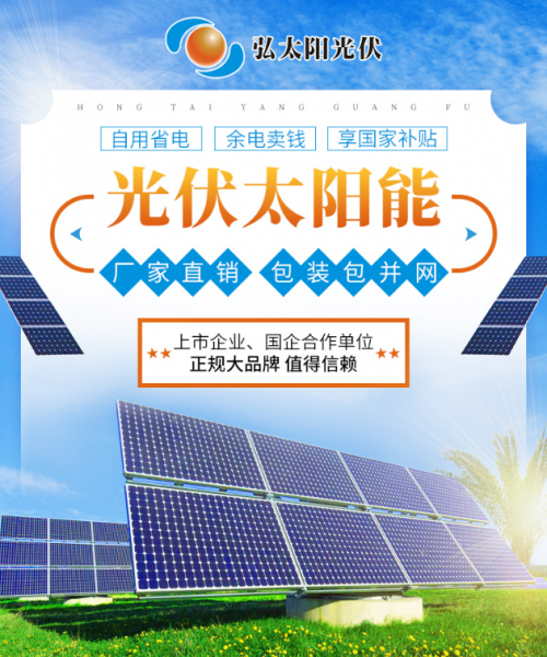 这也完美契合了当下国家的发展趋势,可谓是政策利好,时势所需!弘太阳光伏太阳能,现在建站优惠多多,包并网、包安装,厂家直供货源到家,智能管理,不需要专人打理,产品使用寿命长,装在屋顶、地面、水面都可以,晒晒太阳就能把钱挣。