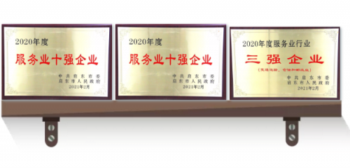 在2020年期间,启东物流公司和国贸公司两家公司在全球疫情影响的大背景下销售业绩逆势增长取得了优异的成绩。中共启东市委、启东市人民政府授予启东物流公司2020年度服务业十强企业和2020年度服务行业三强企业(交通运输、仓储和邮政业)荣誉称号;授予国贸公司2020年度服务业十强企业及2020年度服务行业三强企业(批发和零售业)荣誉称号。