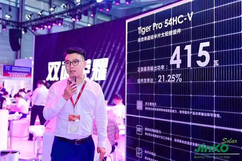 全球光伏领军企业晶科能源,在上海SNEC 2021展会发布多款全新产品,包括全新TigerPro系列415W高效光伏组件、晶科BIPV系列产品以及晶科全新智能光储系统。晶科能源自成立至今,始终坚持创新研发,引领光伏行业高质量发展,加速扩展新能源业务板块,助力实现碳中和目标。晶科能源在巩固光伏组件领域领先优势的同时,大力推动“光伏+”业务板块的落实,致力于为全球客户提供全方位的清洁能源解决方案。