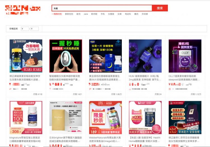 在某宝搜索“失眠”,围绕“助眠”的产品与服务品类众多,涉及智能电子产品、日用品、香薰用品、甚至音频APP等多个品类。