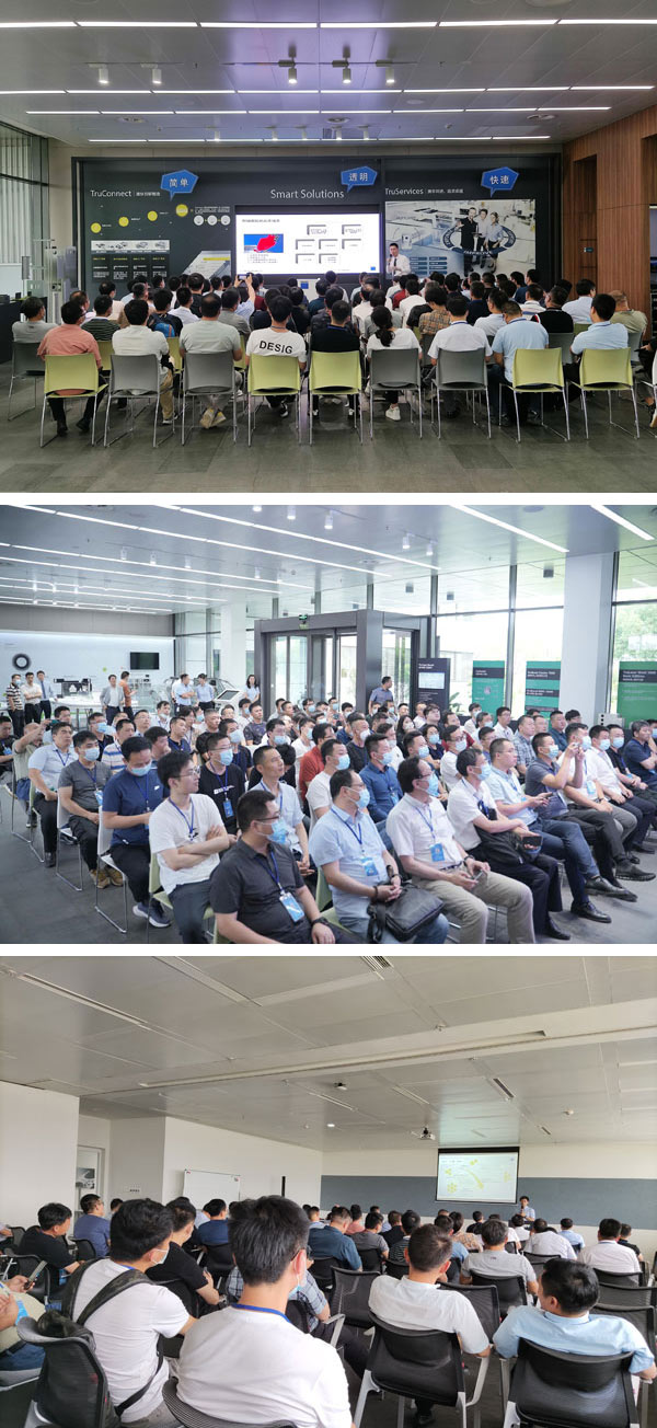 参观人员走进通快,便感受到厂区内环境极为整洁,自动化水平颇高,令人感到十分舒适。在此氛围下,通快产品专家朱磊、韩思达在通快公司内部进行了“破局多品种小批量,浅谈通快激光焊接技术在气箱生产中的应用”、“低谷之后,皆是上坡——后疫情时代的逆周期思考”的主题分享。身临其境品思想。在通快公司,参观人员的耳边是讲解,眼前是实物,通过一种理论与实际相结合的方式,更加深刻的体会了通快公司针对行业热点问题的思考与总结。
