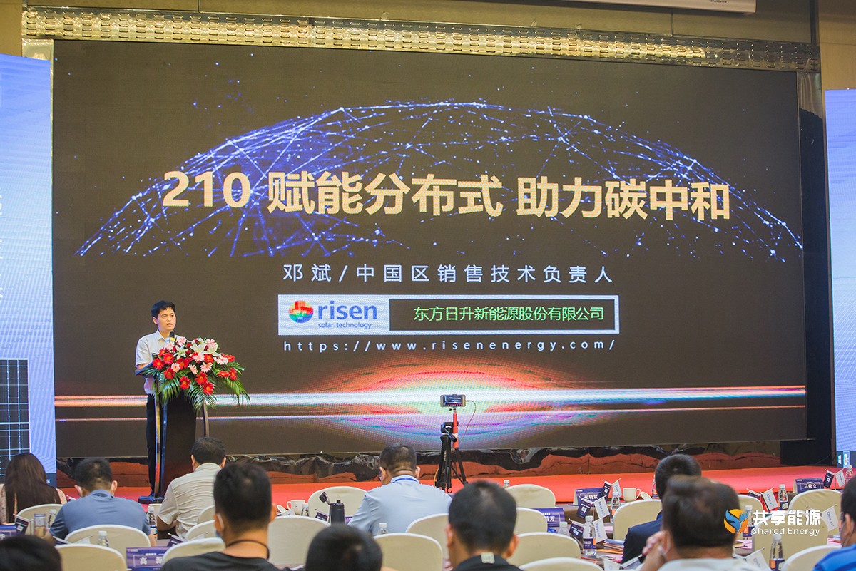 7月9日,东方日升出席《中小型工商业光伏市场发展研讨会》徐州站。中国区销售技术负责人邓斌先生结合“整县推进”的热点,分析碳中和背景下分布式光伏的发展前景,并以《210赋能分布式,助力碳中和》为主题发表演讲。