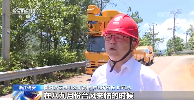 在浙江沿海的瑞安,电力工人冒着高温,更换电杆、导线,增立钢管杆,打造“不怕台风的电网”。 国网瑞安供电公司高楼供电所所长 叶可冰:在八九月份台风来临的时候,尽量做到少停电,确保当地的居民正常的生活用电。