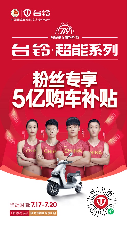 第五届台铃719粉丝节已经于7月1日在全国火爆启幕,活动期间,除了5亿节能补贴,台铃还准备了超值换购、旧车折价等惊喜福利,更有赢免单大奖、试驾有礼凭学生证、准考证购车享立减等超多重磅购车优惠,助力消费者锁出行美好体验!
