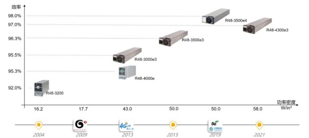 更高的转换效率意味着从市电到主设备中间的损耗的减少,更高的功率密度则意味着各类电源等基础设施的占地的减少,这对于如何有效降低基站占地,实现基站机柜化、快速规模部署尤为重要。