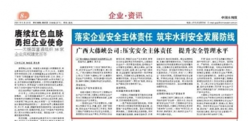 近日,中国水利报刊登了对广西大藤峡水利枢纽开发有限责任公司(以下简称“大藤峡公司”)的专题报道。
