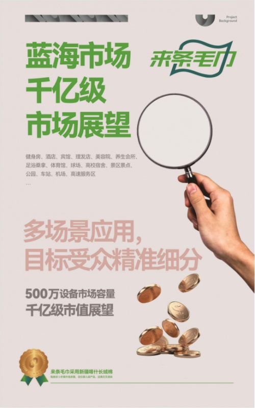 时不我待,来条毛巾品牌主打智能共享毛巾机,其所推出的产品经投入市场一年后得到了很好的反馈。迎合了大众的需求,特别是在后疫情时代,每个人对公共卫生的意识达到最高;而社会中的很多商品又无法达到用户的期望;例如理发店的湿毛巾,健身房的浴巾,擦汗巾,宾馆的毛巾等等都存在着不明安全隐患。而智能共享毛巾机,一人一次用一巾,真正做到了安心、卫生、方便;给广大人民带去了便利的同时,公司还能依靠自己的品牌和信誉获益。