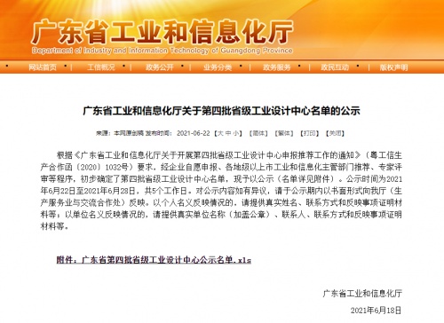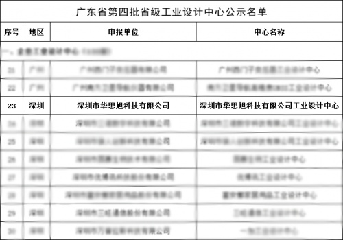 近期,广东省工业和信息化厅公布了广东省第四批省级工业设计中心名单,深圳市华思旭科技有限公司等139家单位为广东省第四批省级工业设计中心。