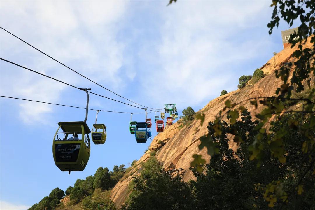 你可以乘坐高空缆车,俯瞰脚下绵延的云蒙山山脉,或高或矮的山峦被秋色浸染,草木树叶打成卷如星辰洒落在满目金色里。