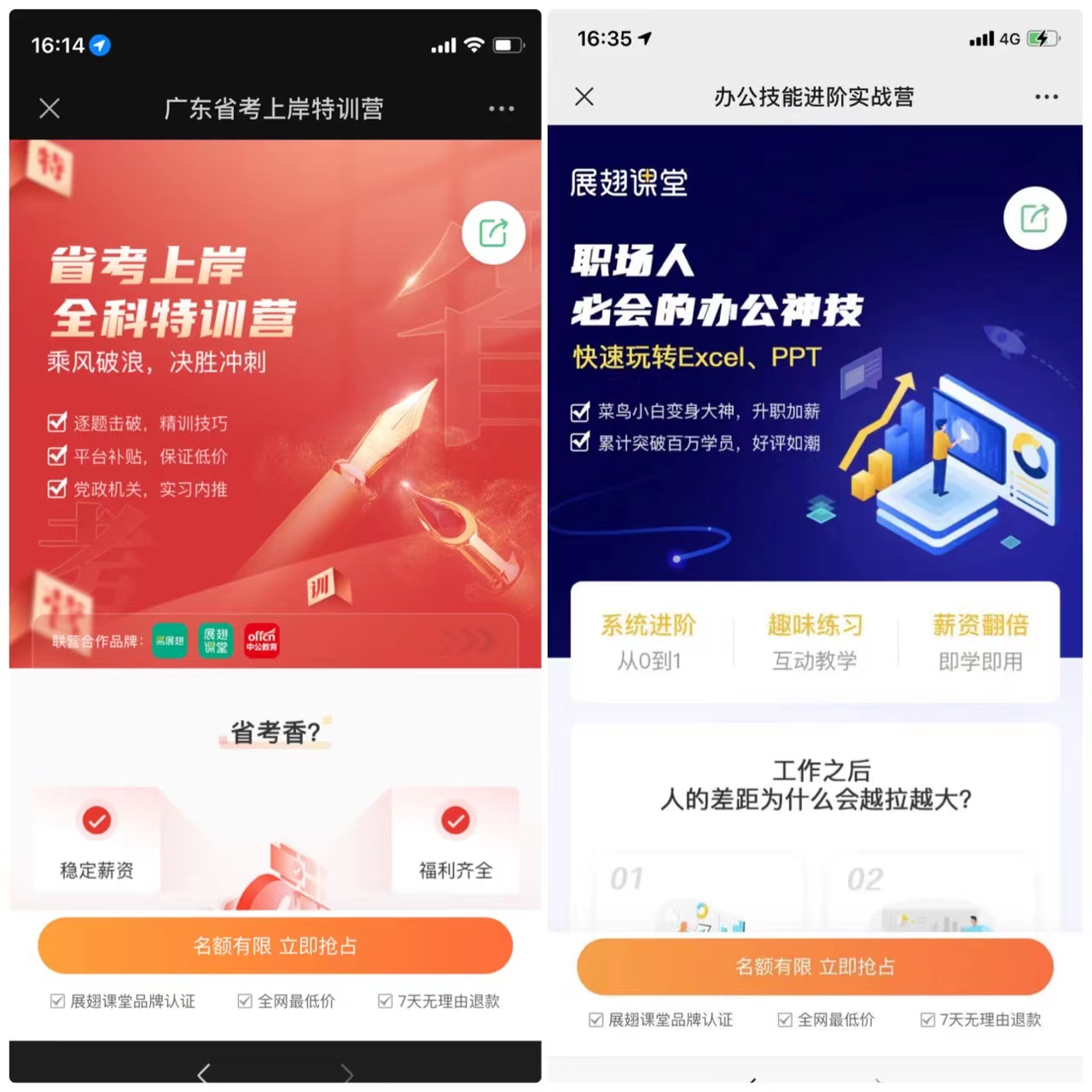 目前,展翅课堂现已陆续筛选、合作超200家知名职业教育培训机构,涵盖职考、公考、考研、进阶考试等多个课程类目。其中,展翅课堂根据机构行业影响力、课程研发实力、售前/售后团队及市场口碑等多项指标,筛选出中公教育、文都教育等多个行业top级机构达成战略联营,共同研发并上线了品牌精品课,共创双赢。