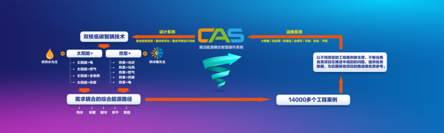 当前,在“双碳”目标下,能源的高效转化、清洁高效利用已经成为当前的热点问题,这迫切需要对多类能源进行统一运行智能化管控,以提升其绿色化和高效化水平。四季沐歌CAS系统应需而生。据了解,该系统是基于能源供给清洁化系统设计的数字化工具,也是终端客户用能智慧管理平台,可以通过大数据算法实现不同场景下最佳综合能源应用。通过清洁能源耦合智能操作系统(CAS+),四季沐歌充分发挥低碳清洁能源综合服务商的自身优势,深化能源技术,将“太阳能+”和“热泵+”作为主要能源方案,垂直或横向耦合多种清洁能源为客户提供最为适宜的清洁用能系统。