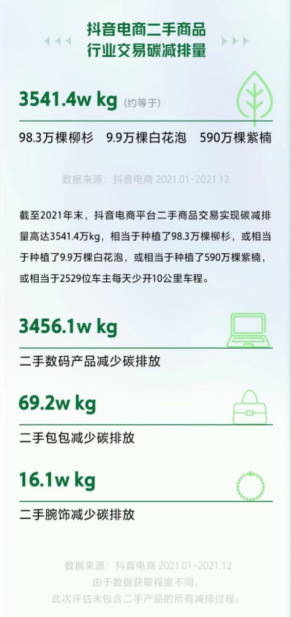 抖音兴趣电商快速发展,促进二手商品行业碳减排3541.4万kg