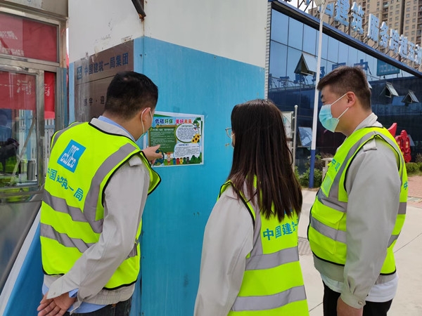 鹏宇迎宾府项目在项目显眼处张贴“低碳环保,共建美好未来”宣传画,宣传低碳生活的重要性。