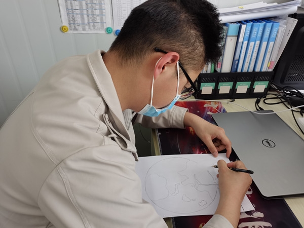 富力建业盛悦居项目党员孙子龙手绘“关灯一小时”简笔画,并将简笔画张贴到项目出入口处,宣传绿色低碳理念,增加项目部员工环保意识。