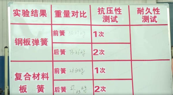 此次参与对比测试的复合材料板簧采用连续玻璃纤维增强环氧预浸料,通过横压一次成型工艺打造。该材料前期多用于航天、军工等领域,具备轻质、耐久、安全、舒适、不易腐蚀等优点,整体质量仅为金属板簧的15%-30%,疲劳寿命更是后者的5-10倍,同时结构简单、拆装方便,运行噪声小。