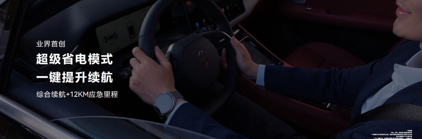 超级省电模式在车辆 SOC ≤ 15 % 时可开启(非情景和道路模式下)。12 km 为问界 M5 EV 综合续航 15% SOC 增加的应急里程,此里程值和 SOC 值线性相关,数值来自赛力斯实验室。车辆实际续航在实际道路行驶中,受不同环境温度、行驶路况、驾驶习惯及操作、电池使用寿命等客观因素影响而有差异。 ↑