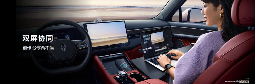 此外,问界M5 EV还新增了双屏协同[9]和手机协同功能,电脑可以便捷地与车机互联;手机日程、导航等信息自动同步至车机,甚至在地库等信号不好的位置能够共享网络给车机。