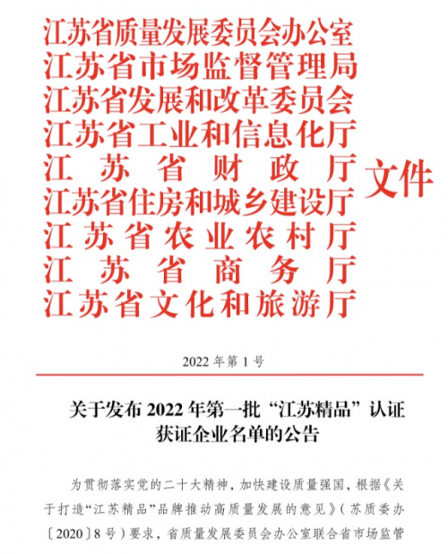 江苏精品”是江苏省委、省政府大力实施品牌发展战略、建设质量强省的一项重要举措。获得“江苏精品”认定的产品为具有国际先进(国内领先)水平,创新能力强、品质卓越、 品牌效应好、经济和社会效益显著的自主品牌产品。由江苏省委、省政府牵头组织依据国际通行认证标准和流程严格评选,是高品质、高水平的代名词,含金量极高。A. O.史密斯「瀞」油烟机荣获“江苏精品”认证既是对产品质量的肯定,也是对A.O.史密斯创新与研发实力的认可。